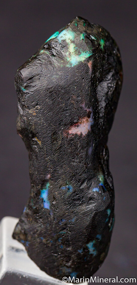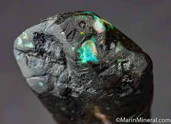 Black opal that has completely replaced a section of fossil Bamboo from recent finds in Java. It is black with areas of color and also shows the detail of the former bamboo. These were found in the past 2 years and are uncommon.