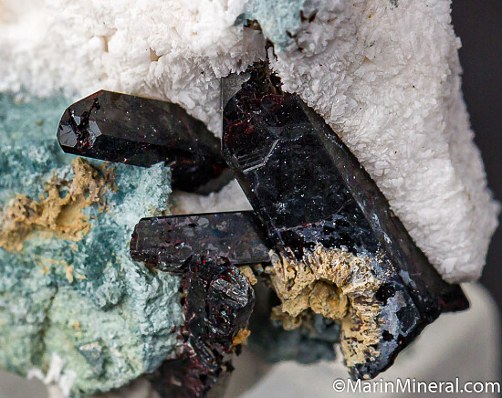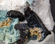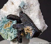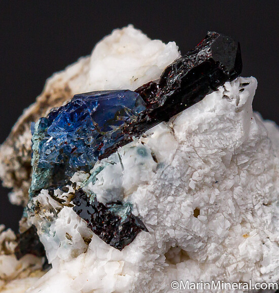 Two Benitoite crystals and several Neptunite crystals to 11mm in size on matrix. Crystals on front and back.