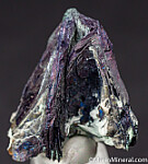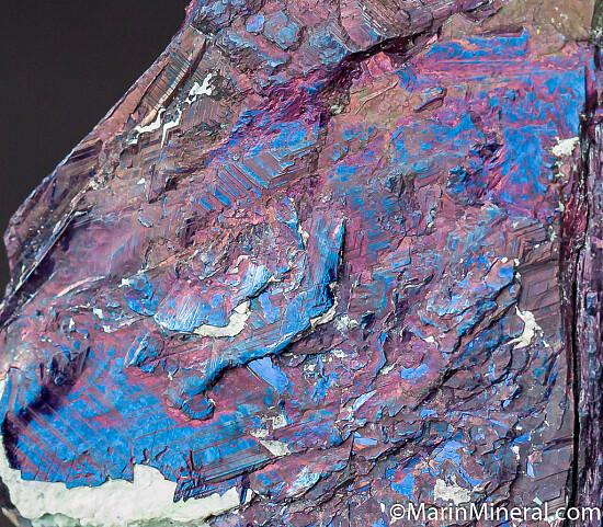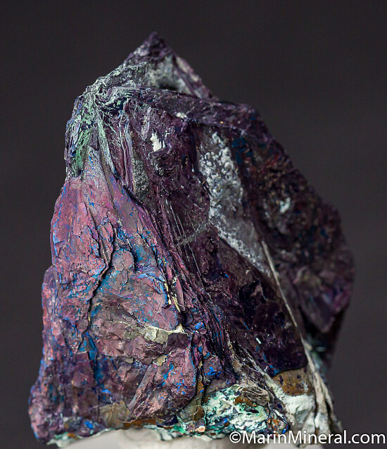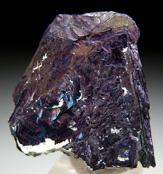 Thick crystal groups of irridecent Covellite. Can be displayed equally well from a number of directions.