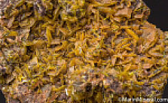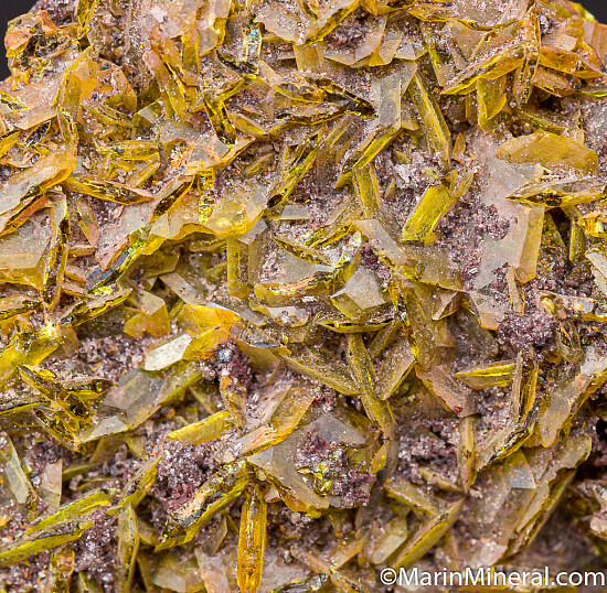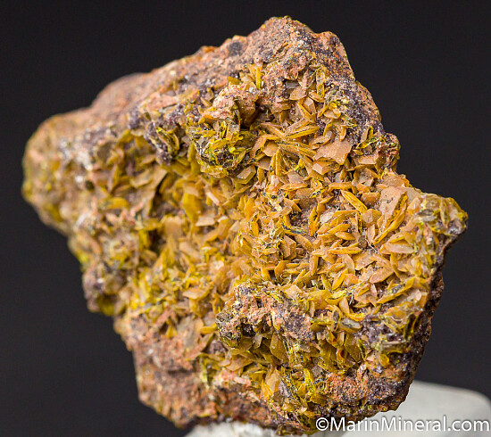 Thin piece of matrix covered on both sides with yellow Sturmanite. Loaded with crystals!
