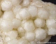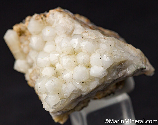 Pearlescent white Tarnowitzite crystals covering the top surface of matrix. A Tsumeb classic.