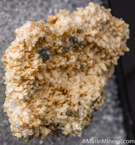 Areas of small hair-like Elbaite crystals on a mass of white Feldspar crystals. From an old collection and comes mounted in a plastic display case.