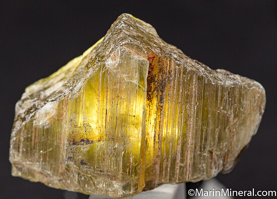 Crystal of rare Diaspore. The crystal is a greenish golden color and is fully translucent with gem zones. The world's best Diaspore is found here in Turkey. Gemstones cut from this material is marketed as 'Zultanite' and often exhibits an Alexandrite-like color change. Weighs 42.4 grams.