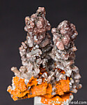 Stalactite formatiions of Calcite crystals over Limonite. There is also another more tabular shaped minerals mixed in withteh Calcite crystals.