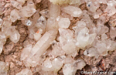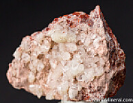 Sparkling white Calcite crystals on matrix from the Kalahari manganese fields. The crystals are scalenohedrons with transparent tips.