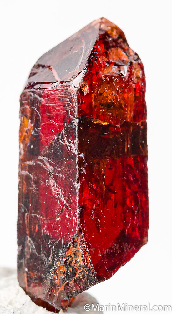 Single gemmy Zircon crystal with a nice wine red to red brown coloration. Complete all around and undamaged.
