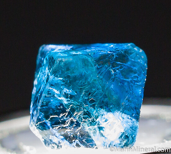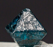 Transparent blue Gahnite crystal, the zinc rich end member and one of the rarer species in the Spinel group of minerals. A complete octahedron with one tiny chip on one tip, otherwise perfect and one of the sharper most perfect crystals I've had of this material. It's also transparent internally. These were first discovered in 2001 and are found mostly of industrial quality. Though they don't get very large, the color is spectacular. The GIA has written a nice article about these crystals published in Gems & Gemology, Fall 2019, Vol. 55, No. 3.