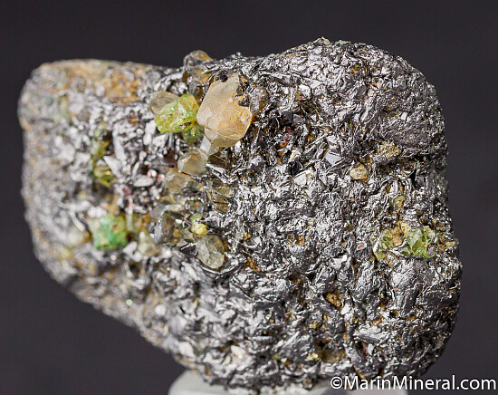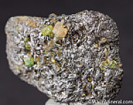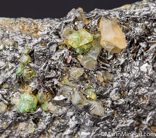 Crystals of Tsavorite and Diopside on Graphite. The crystals formed on massive Graphite, and there are also crystals of Graphite present. Tsavorite is a chrome and vanadium rich variety of Grossular from East Africa and is one of the most valuable types of garnet found anywhere. This specimen was found at the Merelani Tanzanite mines and a fine example of some of minerals found at this locality.