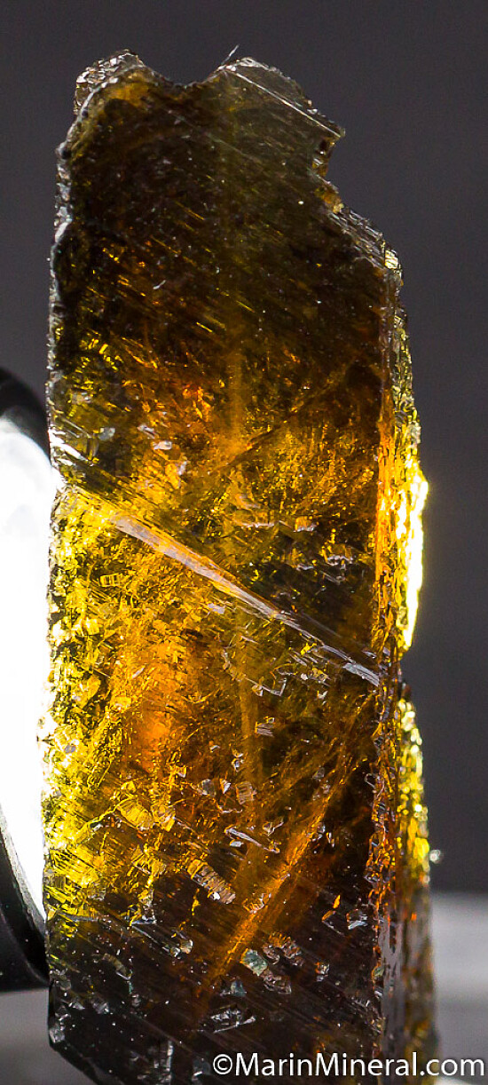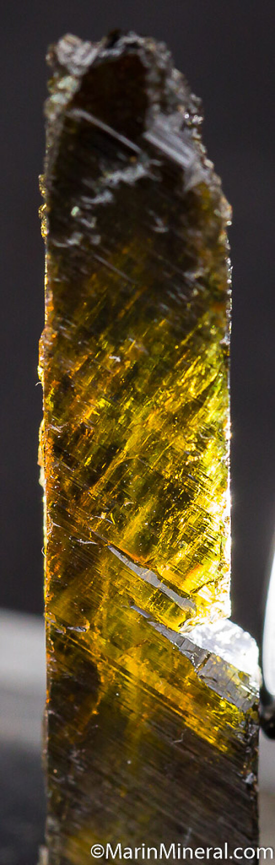 Two crystals of transparent Epidote crystals with distinct faden lines running up the center. Both are perfect and undamaged. Unusual specimens.