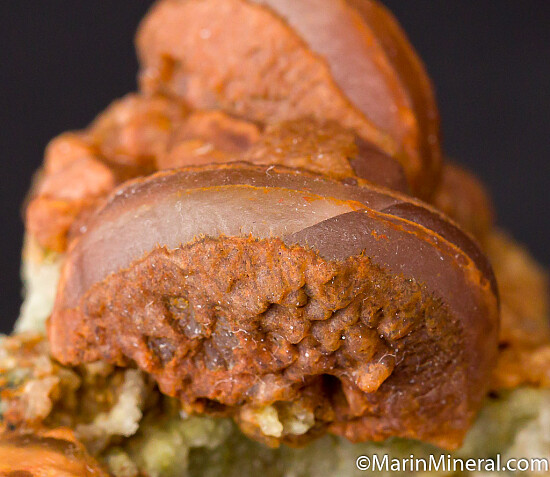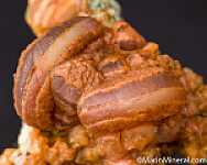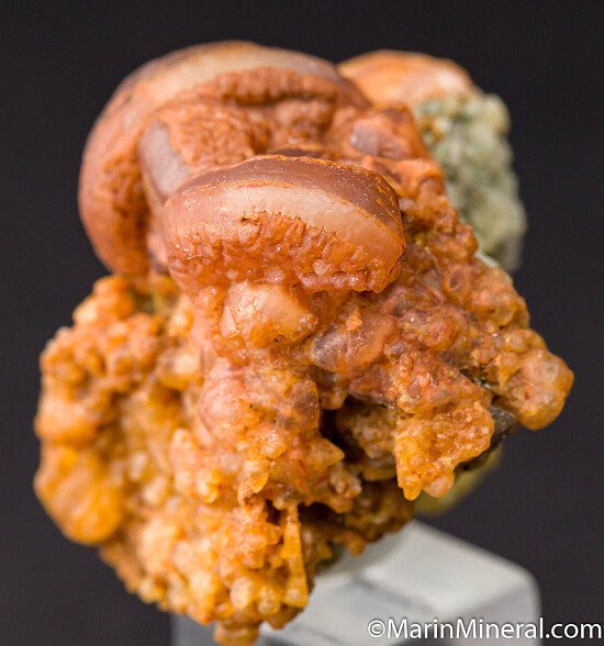 Color zoned orange Calcite crystals on matrix. Crystals to 1.8cm. Unusual and oddly attractive specimen.