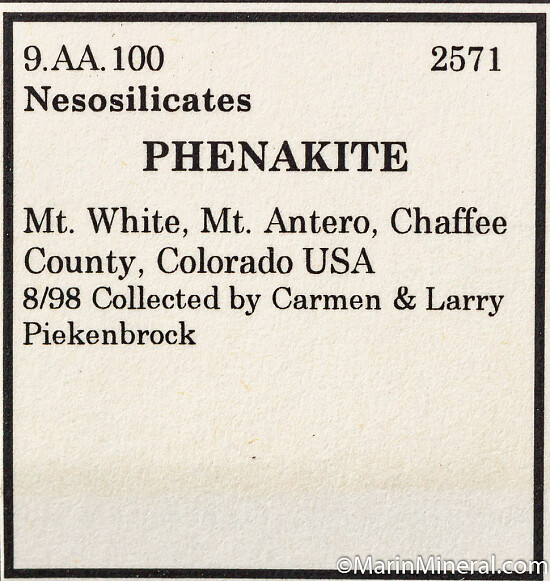 Colorless Phenakite crystal with sharp, well crystallied faces, almost garnet-like in form. Collected in 1998.