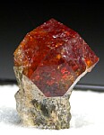 Sharp cinnamon orange Grossular crystal atop a green Diopside crystal. The garnet is gemmy, complete and undamaged.