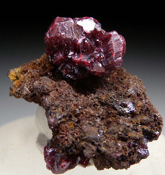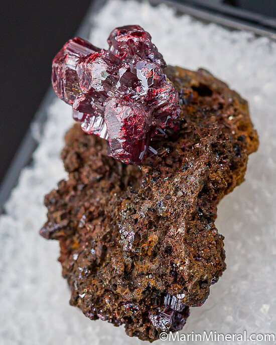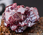 A 1.2cm cluster of thick Proustite crystals on matrix. I bought this as part of an old collection and it unfortunately came without a label or locality information. I can only guess it is German. Chunky crystals with good red color. Undamaged and valued at $500.