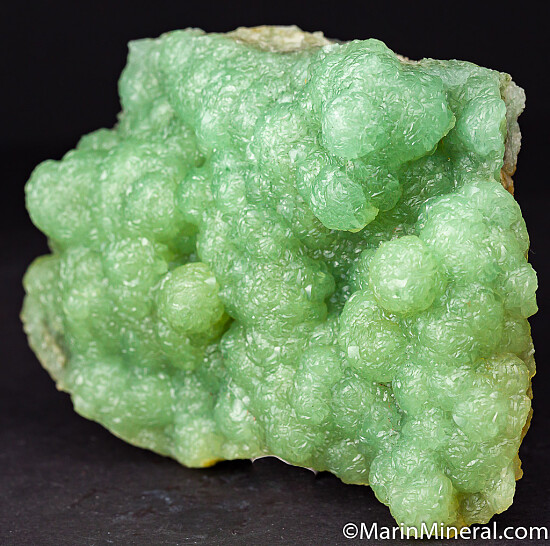 Large flat specimen of bubbly Prehnite. A nice translucent green with exceptional luster. Very clean with no damage excpt for a chip at the lower left edge. Out of an old collection from the 1980s.