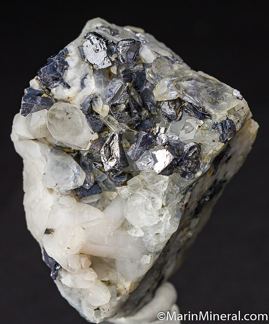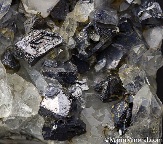 Bright and shiny Galena crystals (some skeletal!) associated with Quartz crystals. This came out of an old collection without a label, but have \"Butte Co.\" writtn on the back. It's possibly from the Surcease gold mine. Neat and unusual piece for a California collector.