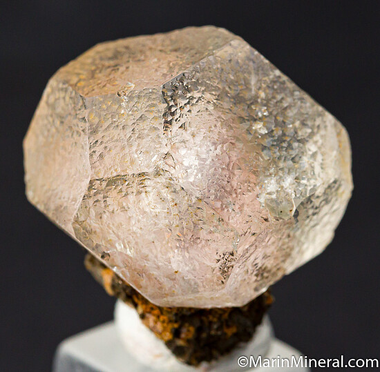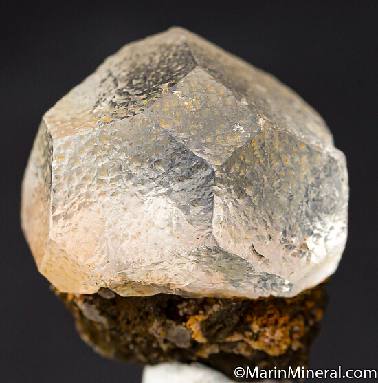 Transparent, colorless Fluorite crystal atop Pyrhottite. The crystal is 2.7cm wide and a mixture of cube and octahedral faces. A couple very minor chips otherwise complete and perfect all around.