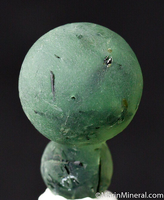 Two interconnected spheres of transluscent green Prehnite included by Epidote crystals. Good quality, aesthetic specimen. This was hand selected for beauty and quality out of hundreds of specimens. An undamaged floater complete all around. Super cool thumbnail!!!