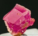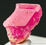 Single Pezzottaite crystal (Caesium rich Beryl) with a raspberry red color and good transparency. The crystal has a broad, smooth front face with bevelled edges and a more etched and stepped growth on the backside.