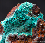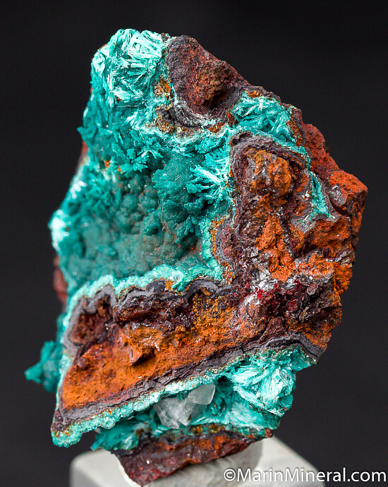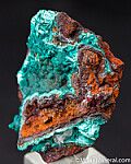 Deep blue Rosasite with lighter blue green Aurichalcite, white Calcite on Limonite.