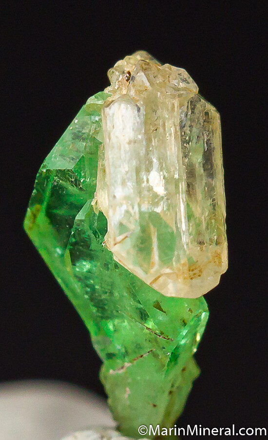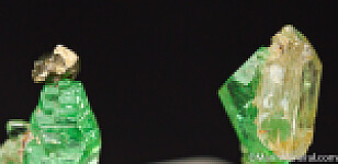 Two small, gemmy faden style Tsavorite crystal groups. One has an attached Diopside crystal and the other has attached Pyrite crystals. Small but exceptional specimens!!! Stunning thunmbnails from the famous Tanzanite mines of Merelani.