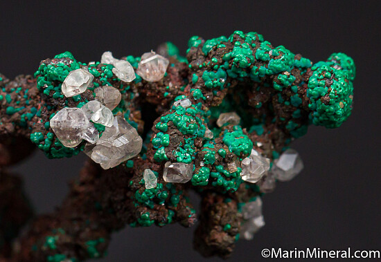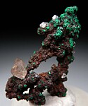 Gem Cerussite crystals and Rosasite over a mass of crystalline Copper. This is one of the special Tsumeb specimens that really amaze. A floater with good crystals on all sides, small but choice. Ex. Jim Parrish and Norm Dawson collections with labels.
