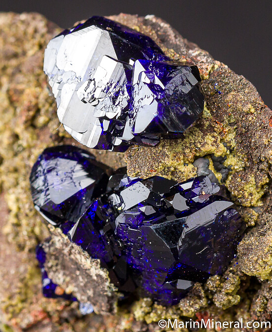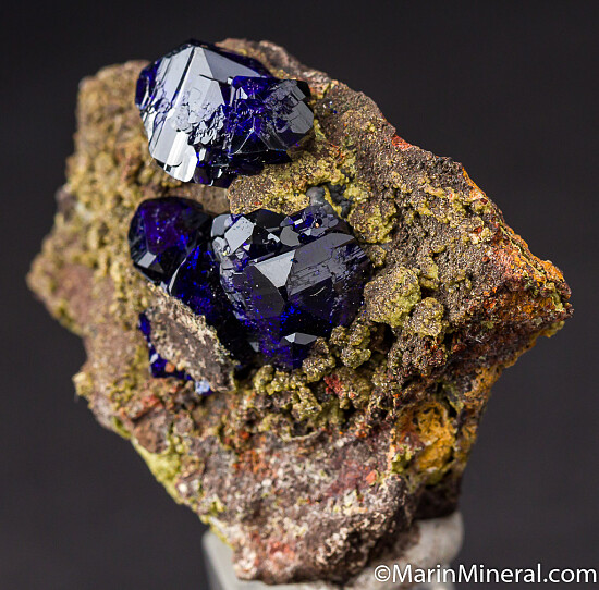 Highly lustrous Azurite crystals to 1.2cm on matrix. EXCELLENT blue color with undamaged crystals. A USA classic.