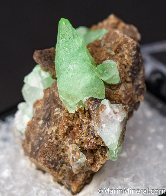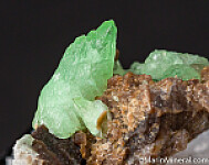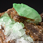Lime green Calcite, known as 'Kiwi' Calcite, on brown petrified wood (Quartz). The Calcite crystal is 1.4cm long and undamaged. A great thumbnail sized example from a recent, limited find. People lined up to get these at shows and they are hard to come by.