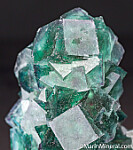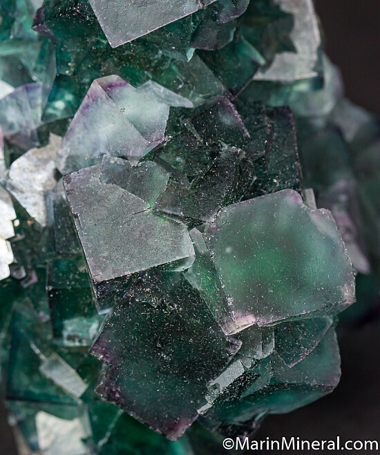 Large sculptural cluster of transparent green and purple cubes of Fluorite. Well crystallized all around with crystals to 4.3cm. Very clean and aesthetic.