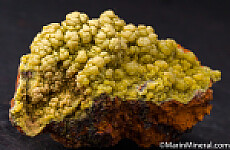 Good sized specimen of Limonite with the top covered by thick masses of green to yellow colored Mimetite.