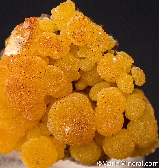Specimen of yellow Mimetite. No matrix, it's all satiny, botryoidal Mimetite. From a recent find in Santa Eulalia.