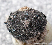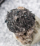 Small black cubes of Bixbyite on the surface of a Hematite psuedomorph after garnet.
