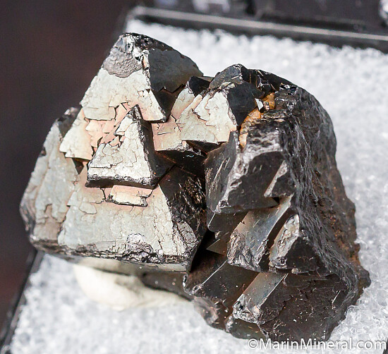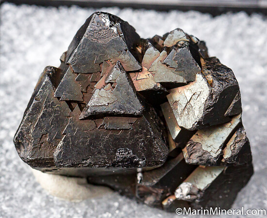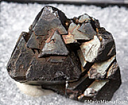Cluster of large octahedral crystals of Magnetite. The large composite crystal at left is 1.8cm. Nice old thumbnail!