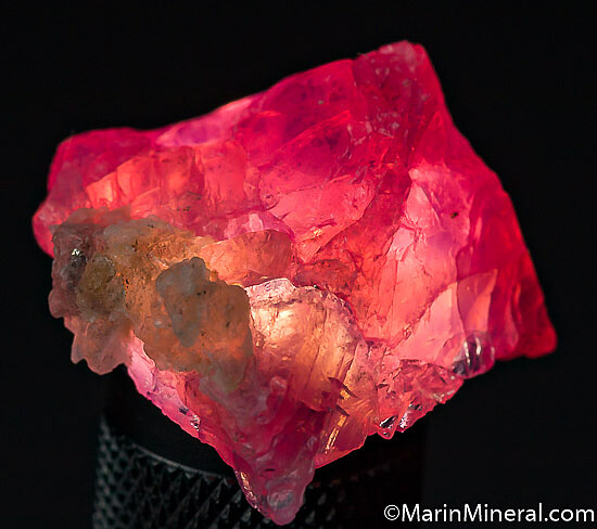Octahedral pink Spinel crystal from recent finds at Mahenge. Complete all around with typical dimpled and indented form.