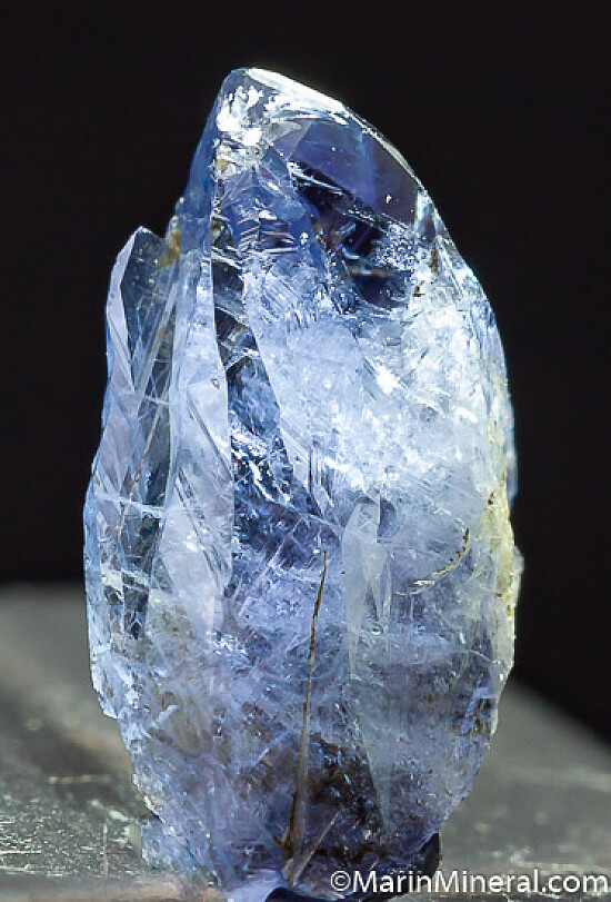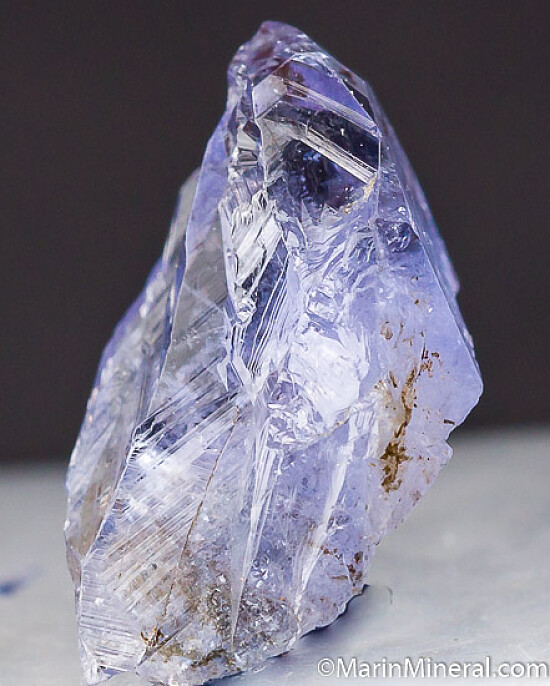 Single glassy purple crystal of Magnesio Axinite, one of the rarer and more interesting minerals found at the Merelani Tanzanite mines. Gemmy with good color.