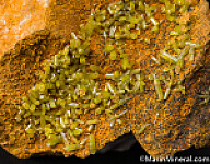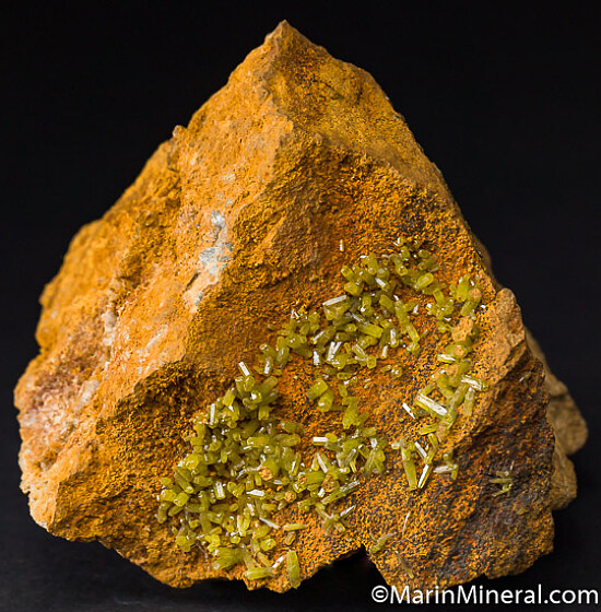 Bright lime green Pyromorphite crystals on the front display face. Good large specimen.