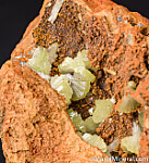 Limonite vug filled with fan-shaped yellow Adamite crystal clusters. This is better than your avaerage Adamite, hand picked
