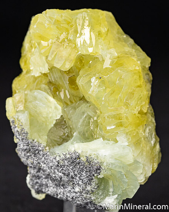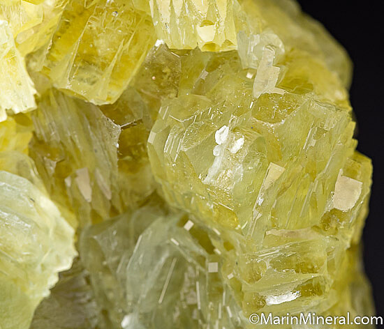 Large translucent Prehnite crystals with strong lemon yellow color from recent finds at Merelani. This has large, chunky crystals typical of the recent material from Merelani, already some of the world's best Prehnite
