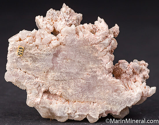 Strange etched Quartz specimen out the San Diego pegmatite suite of an old collection. Exhibits a pink coloration in areas due to Montmorillonite inclusions. Has an old specimen number affixed to the bottom. Was valued at $150 in my website galleries.