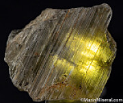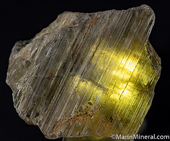 Rare crystal of Diaspore. The crystal is a greenish golden color and is fully translucent with gem zones.