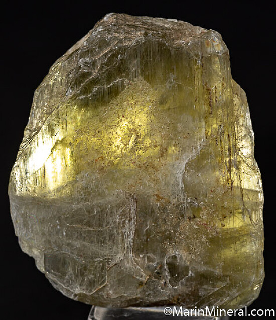 Rare crystal of Diaspore. The crystal is a greenish golden color and is fully translucent with gem zones.