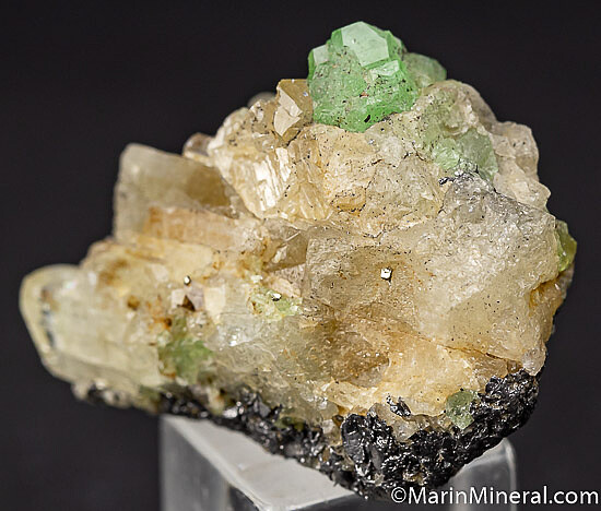 Neat Merelani combo specimen featuring an 8mm Tsavorite crystal atop a groups of Diopside crystals.