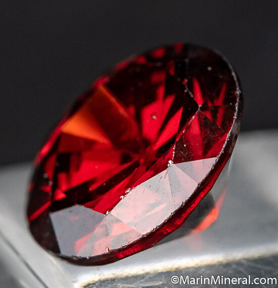 Bright red Cubic Zirconium gemstone. Cubic Zirconium is the cubic crystalline form of zirconium dioxide. First produced commercially