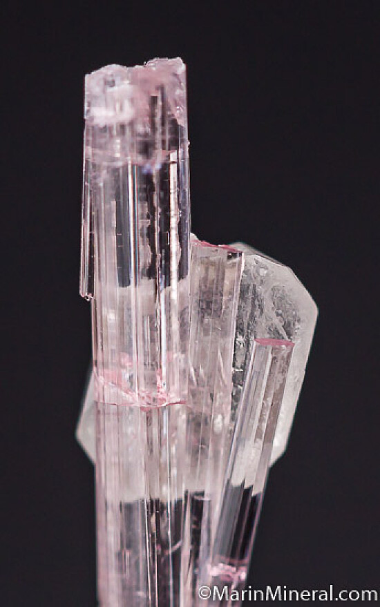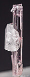 A 6mm crystal of Pollucite attached to a pink Tourmaline crystal section.