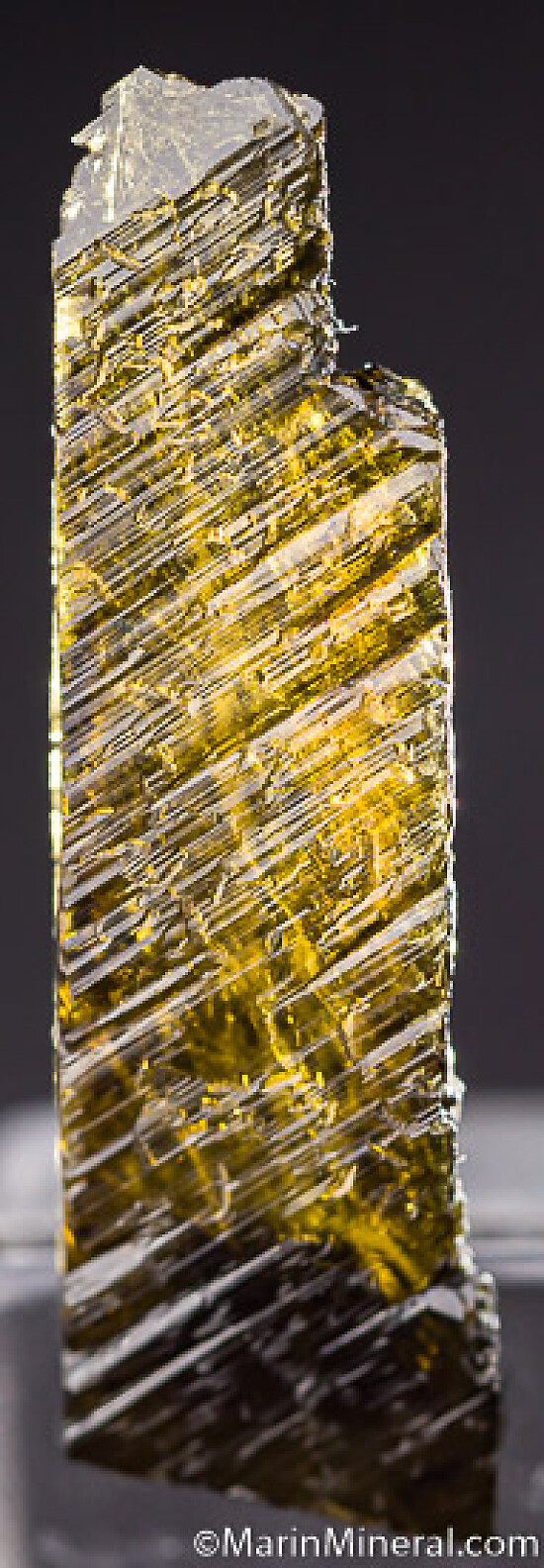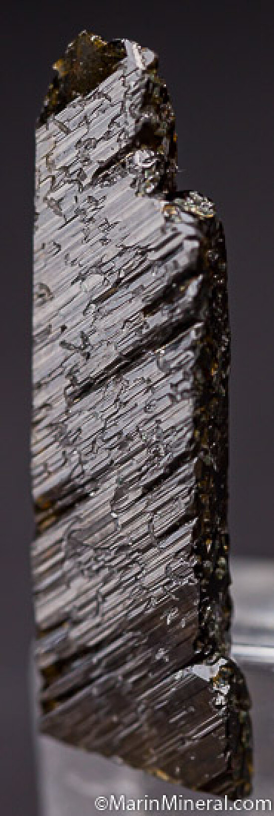 Uncommon crystal 'tower' of faden Epidote. It's solid Epidote with square edges but is made up of