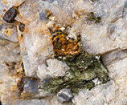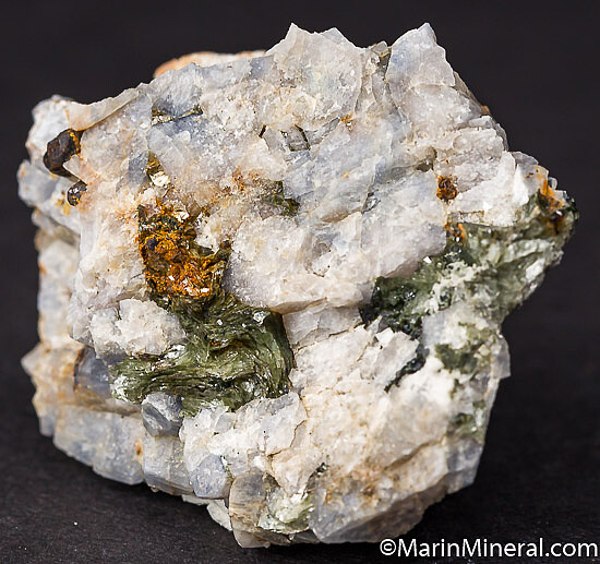 Blue and white Lawsonite crystals in Glaucophane schist. Good representative specimen from the type locality. Loaded with