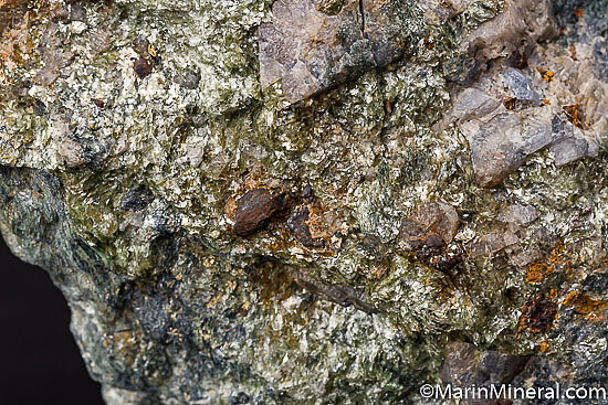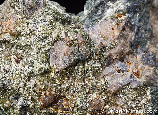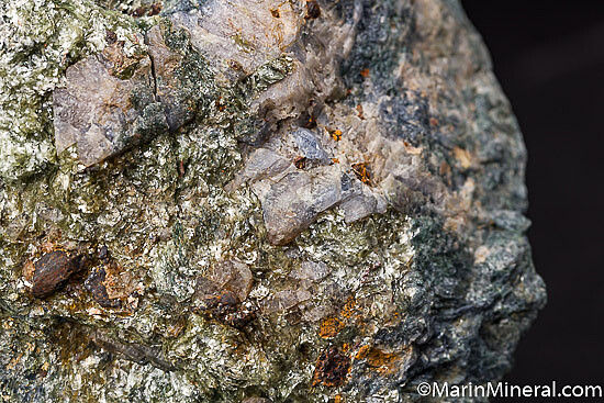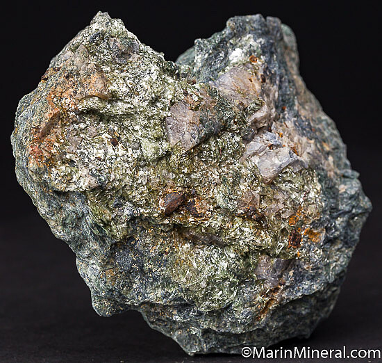 Rare blue/grey Lawsonite crystals to 1.5cm embedded in Glaucophane schist. Good sized, rich specimen from the type locality for Lawsonite.