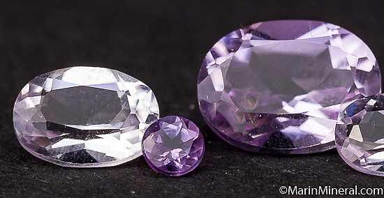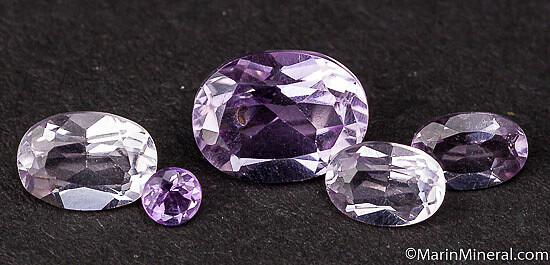 5 faceted gemstones of purple Amethyst. Four ovals and one round with largest a 9 x 7mm oval. 3.5 carats total weight.