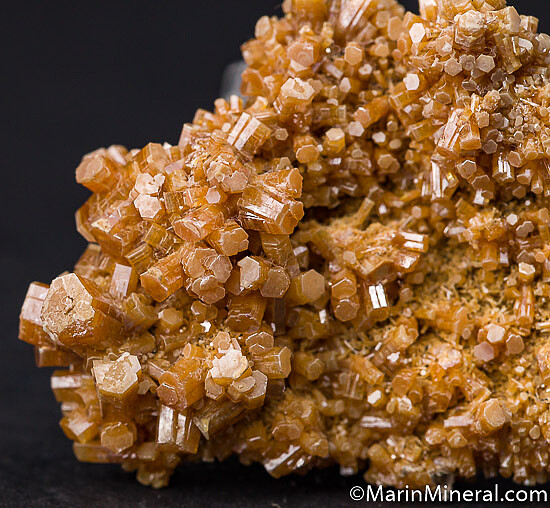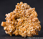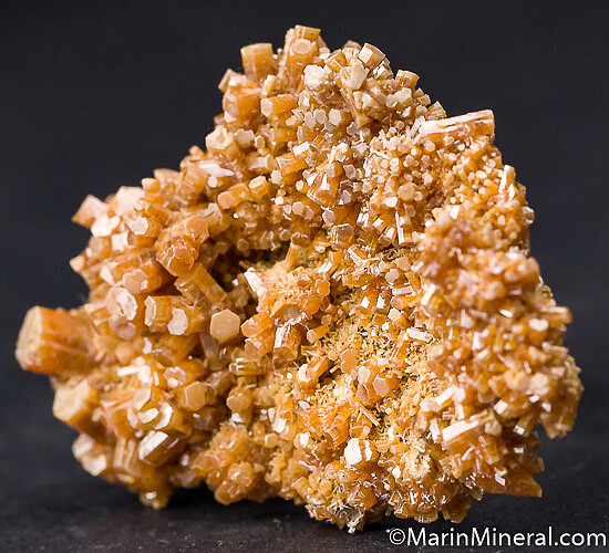 Old Mexican Vanadinite specimen covered with orange Vanadinite crystals. An undamaged floater crystallized on all sides.