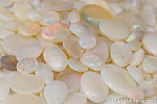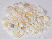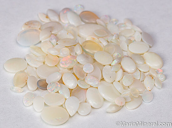 Polished cabachons of solid, natural Australian Opal. A variety of shapes including rounds, ovals, marquis, and teardrops. Some have a white base