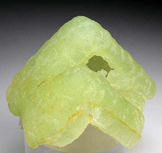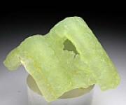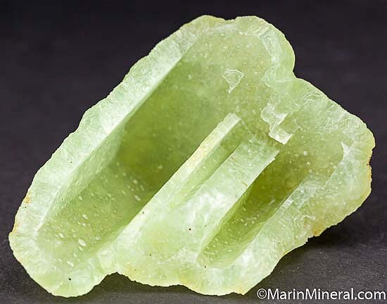 Velvety green Prehnite that formed over (now gone) Anhydrite crystals, leaving this rare and wonderful specimen. Transluscent and undamaged. The inside shows the flat, smooth surfaces of 3 former Anhydrite crystals.